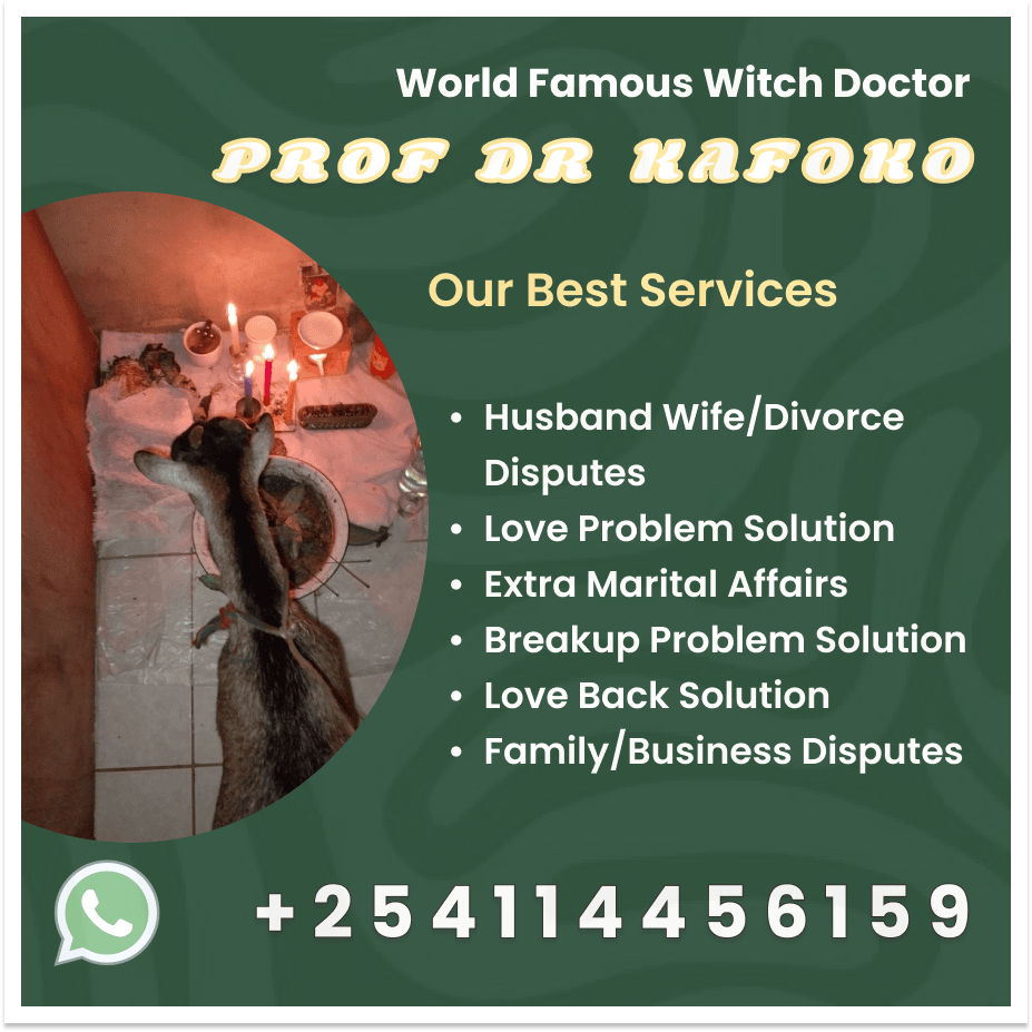 Prof. Dr. Kafoko is one of the most respected and powerful African witch doctors, known across Africa, the UK, USA, and the Middle East for solving complex life problems using authentic ancestral rituals and deep spiritual wisdom. With decades of experience in traditional African healing, he has helped thousands overcome challenges in love life, business struggles, marriage delays, financial hardship, court cases, family conflicts, and more.